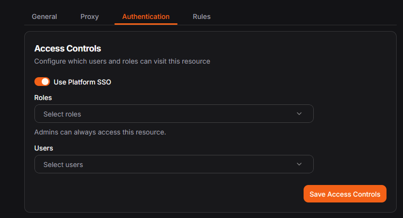 On the "Authentication" tab of the newly created resource, you'll find a section called "Access Controls." In that section, there is a toggle called "Use Platform SSO." Switch it off and click "Save Access Controls."